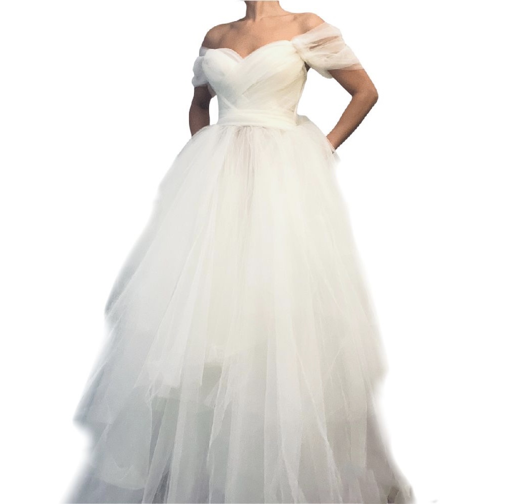 Scarlet ~ Soft gathered tulle creates a dreamy romantic gown ~ Soft gathered tulle draped over a Sweetheart bustier with a full gathered fairytale tulle skirt.