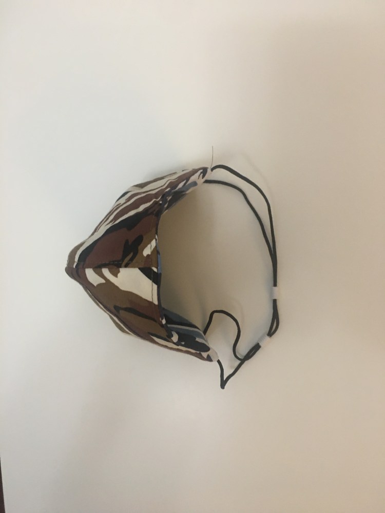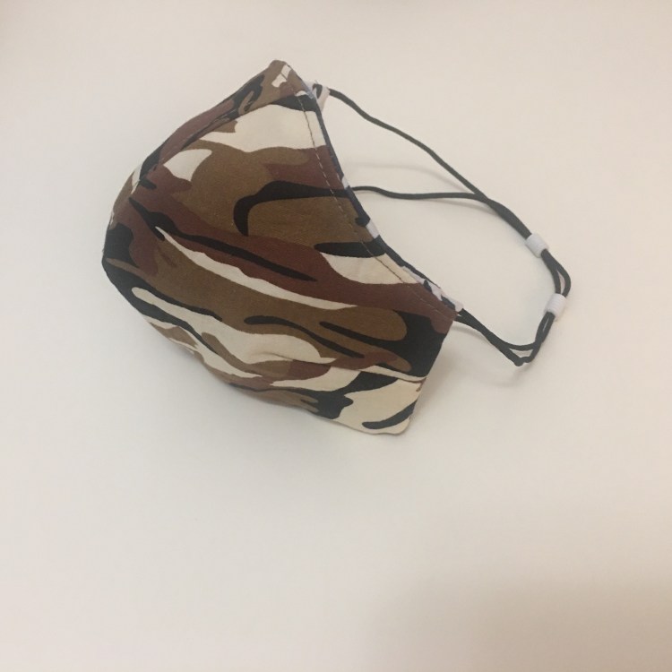 • Reusable 3-ply Face mask • Washable • Adjustable ear loops • Extra Long elastic for head band option/ Hang around your neck • Reversible Camouflage print • Hand Made • Made in USA